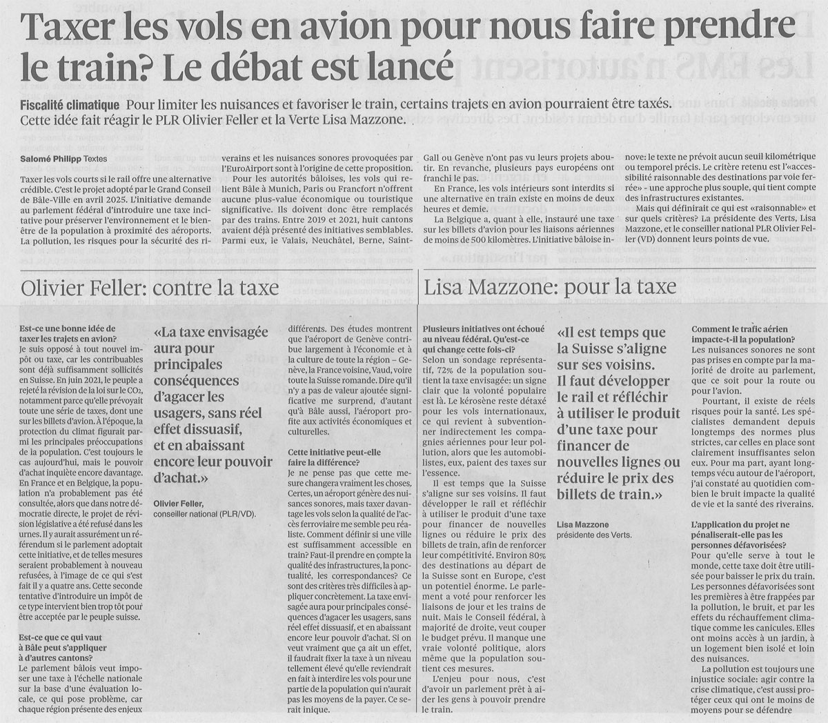 Taxer les vols en avion pour nous faire prendre le train? Le débat est lancé 24 heures, 16 juillet 2025 [ Agrandir l'article ] |