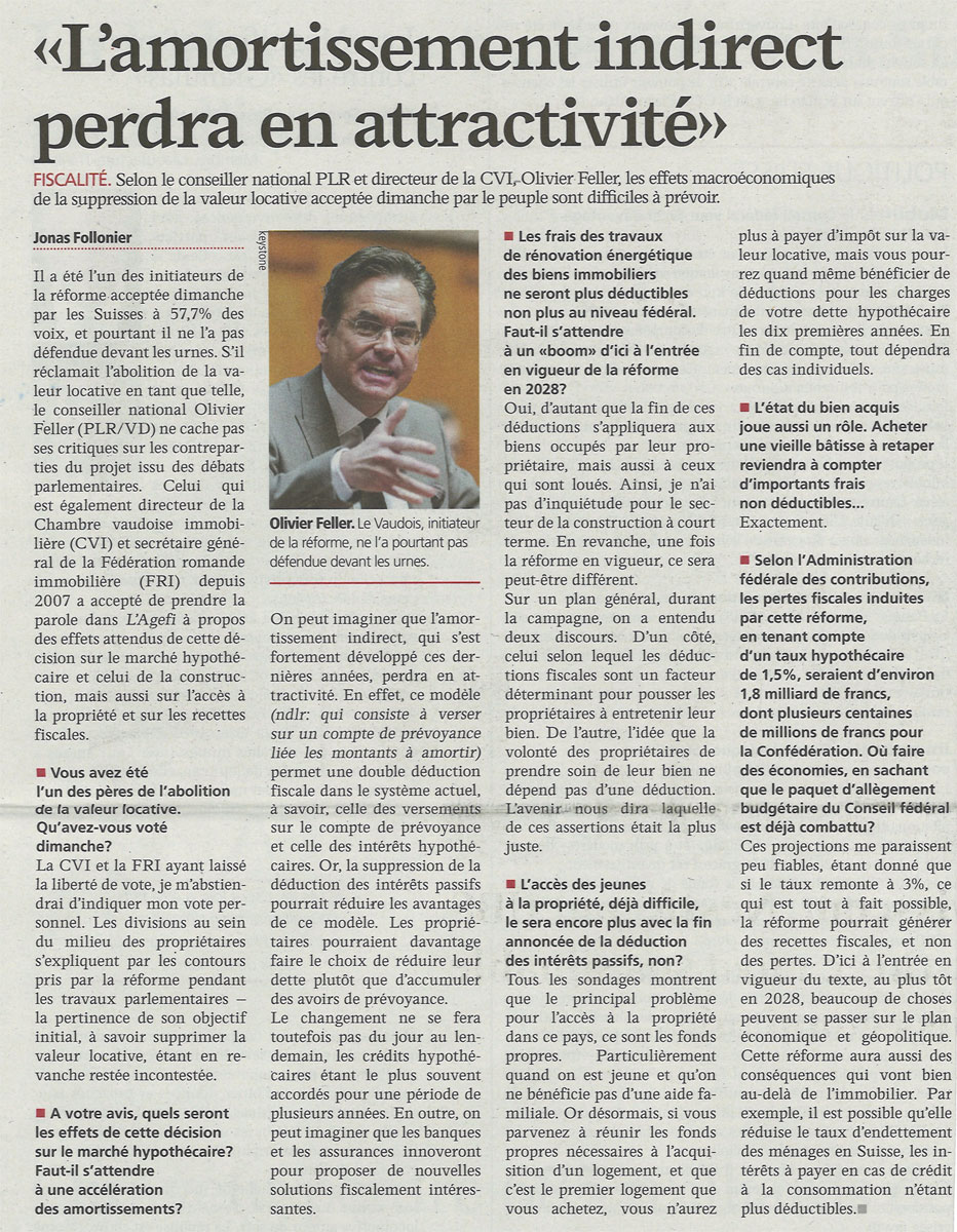 "L'amortissement indirect perdra en attractivité" Agefi, 1er octobre 2025 [ Agrandir l'article ] |