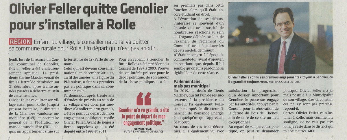 Olivier Feller quitte Genolier pour s'installer à Rolle
