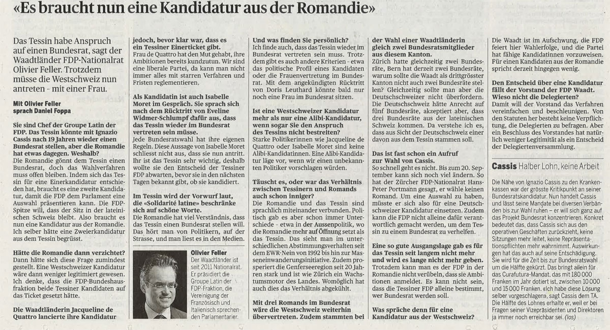 'Es braucht nun eine Kandidatur aus der Romandie' Tages-Anzeiger, 3 août 2017 [ Agrandir l'article ] |